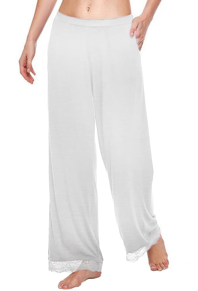 Generic - بنطال نسائى أبيض قطن مزين بفستونة من اسفل البنطال