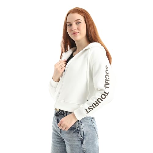 Coctail - هودي قصير بسوستة للنساء، مطبوع عليه رسومات سياحية اجتماعية، كم طويل - 8739