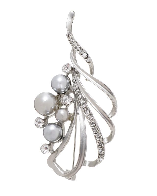 Generic - بروش سواريه على شكل وردة مرصع بالكريستال نسائي ، فضي TON-A-1615
