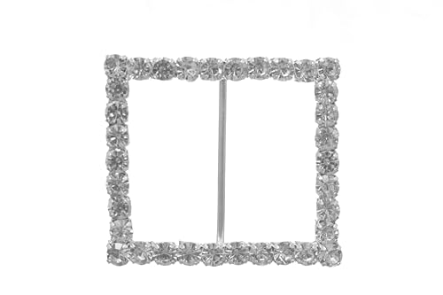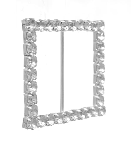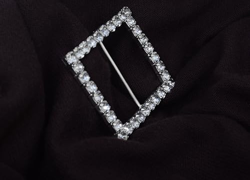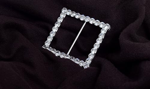Generic - بروش سواريه على شكل مربع مرصع بالكريستال نسائي ، فضي TON-A-1115