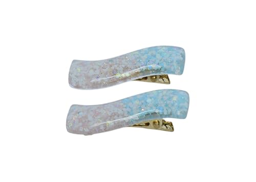 Generic - مجموعة مشابك شعر منحنية لامعة للنساء، 2 قطعة، أزرق وأبيض