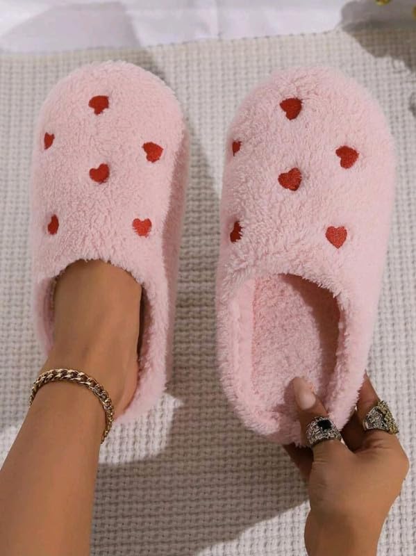 Generic - شبشب منزلي زهري لطيف للنساء بمقدمة على شكل قلب، ناعم وخفيف الوزن في الفصول الاربعة، جزء سفلي غير قابل للانزلاق