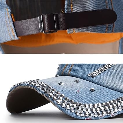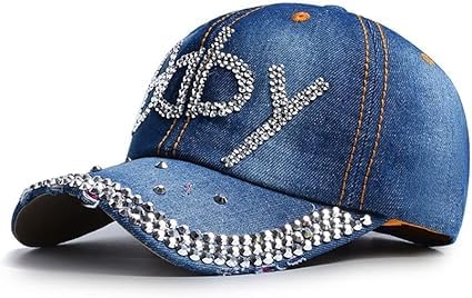 Generic - قبعة بيسبول دينيم نسائية مزينة بالكريستال، قبعة شمس كاجوال، أزرق