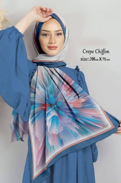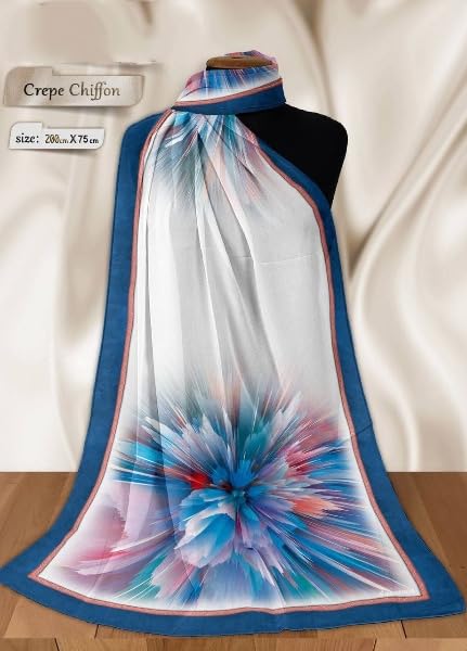 Generic - طرحة شيفون كريب ديجيتال للنساء – إيشارب أنيق وخفيف – مقاس كبير 2م × 75سم