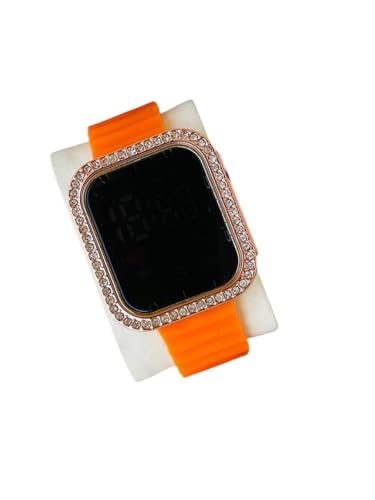 Generic - ساعة رقمية للنساء،إطار مميز فاتح مع كريستال، شاشة عرض رقمية زرقاء، تصميم عصري أنيق