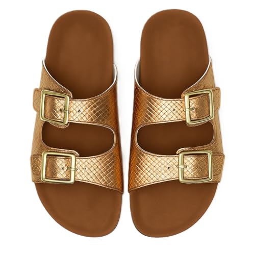 Generic - شبشب بابزيم مزدوج للنساء، نمط مبطن معدني، صندل مريح بنعل داخلي
