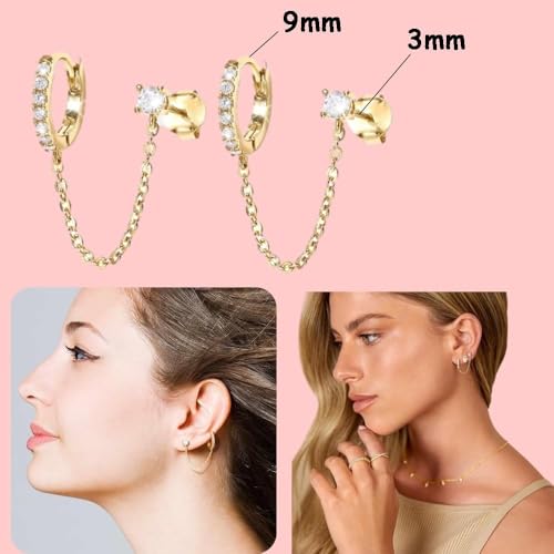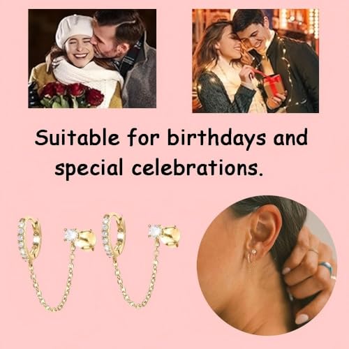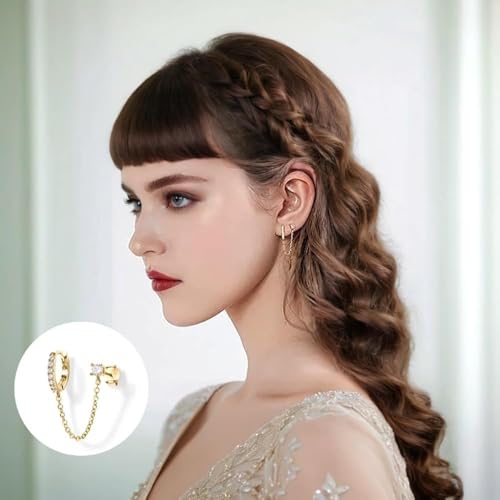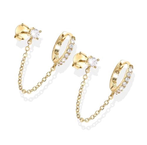 fashion mania - اقراط حلقية حلقية متدلية مزدوجة للثقب للنساء، تصميم انيق للحفلات او العمل او الارتداء اليومي