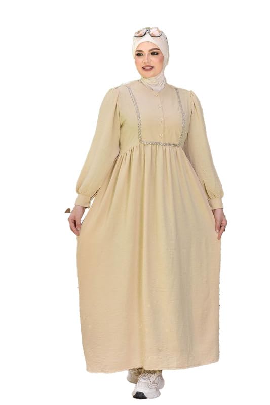 GAMAL SONS FOR ABAYA - فستان نسائي مقاس واحد 90 قيراط من جمال صنز بيج GS-110-42450-بيج