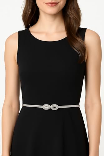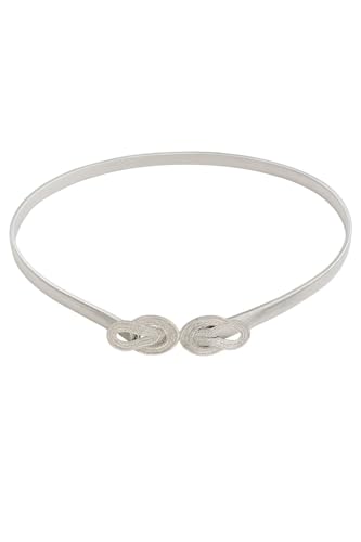 Generic - حزام معدن مرن للنساء مع إبزيم عقدة مزدوجة، حزام خصر فضي قابل للتمدد للفساتين، مقاس واحد