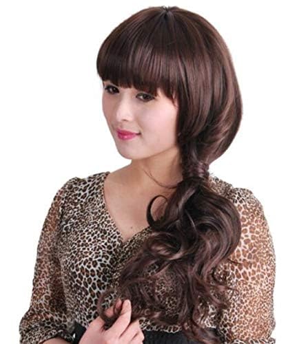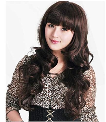 Other - باروكة فلافي انيقة بقصة مسطحة وخصل طويلة وتجاعيد بسيطة بلون بني للنساء - H152، 2724700030553