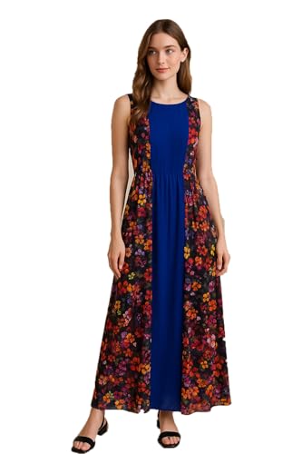 Generic - فستان كاجوال طويل انيق من الشيفون للنساء - لوحة امامية زرقاء وطباعة زهور من الخلف - مبطن بسحاب جانبي واستك خلفي - مقاسات M/L/XL من توماس اند سبليندور