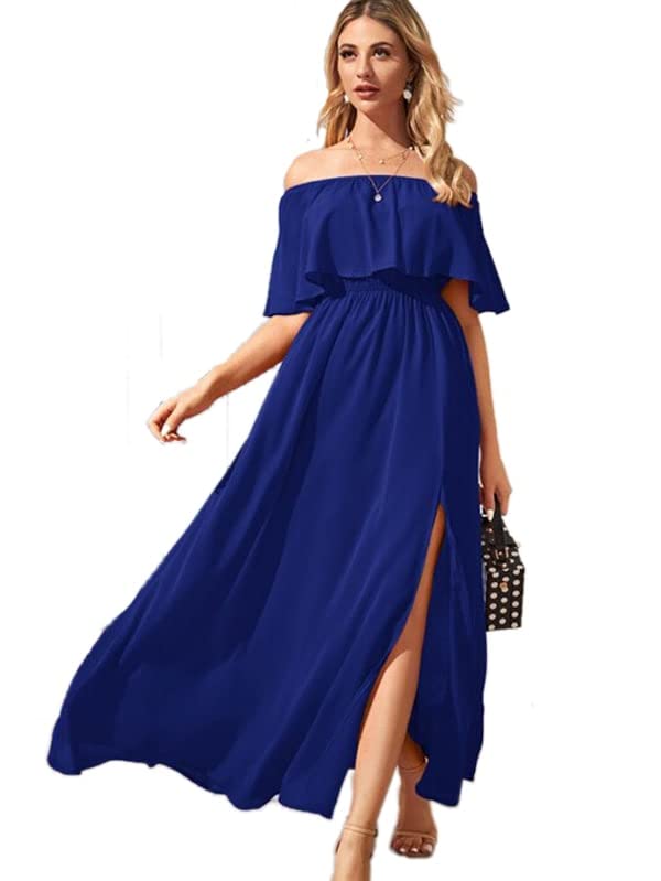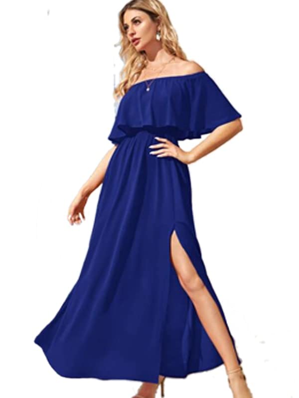 Generic - فستان أزرق نسائى طويل دون اكمام انيق