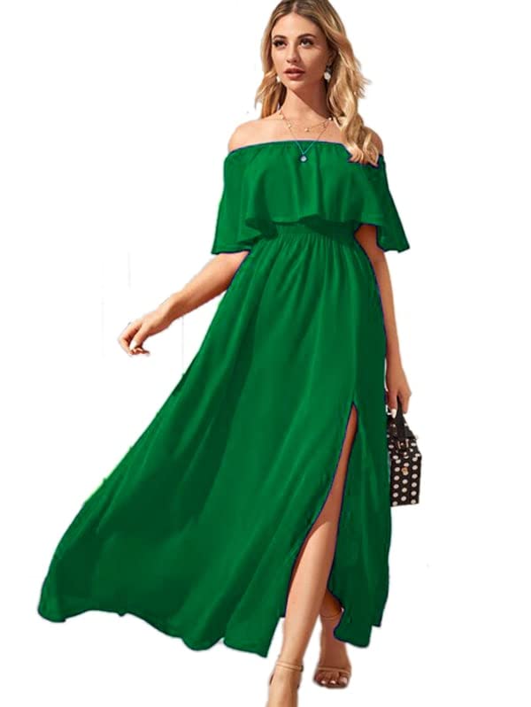 Generic - فستان أخضر نسائى طويل دون اكمام انيق