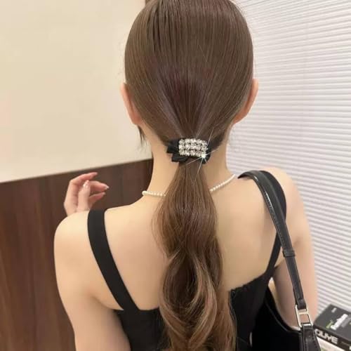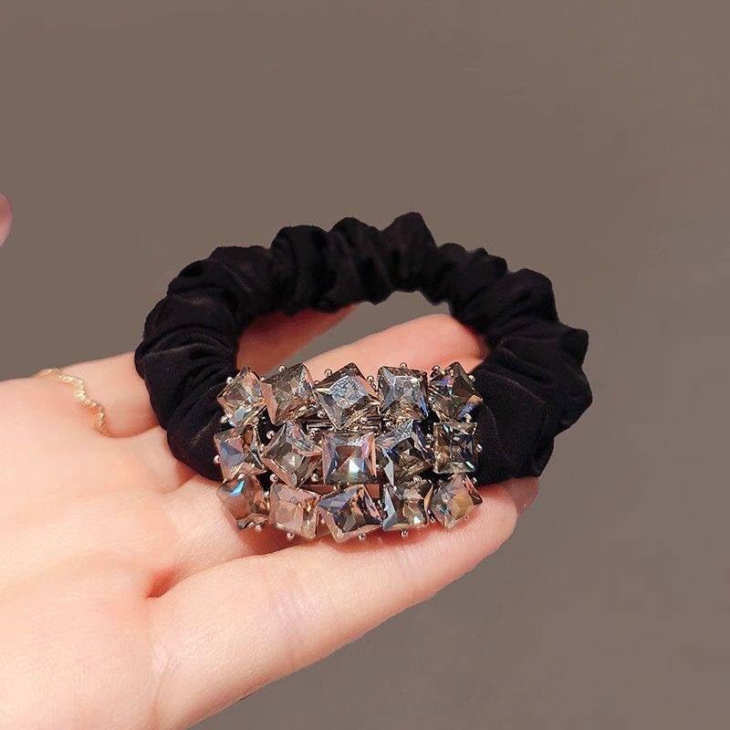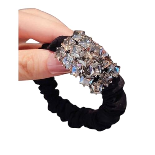 Generic - توكة شعر نسائية أنيقة مرصعة بأحجار كريستال مربعة المعة - ربطة شعر مطاطية سوداء فاخرة لتسريحات الشعر، مناسبة للحفالت والمناسبات الخاصة