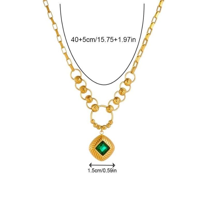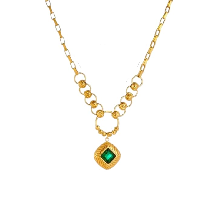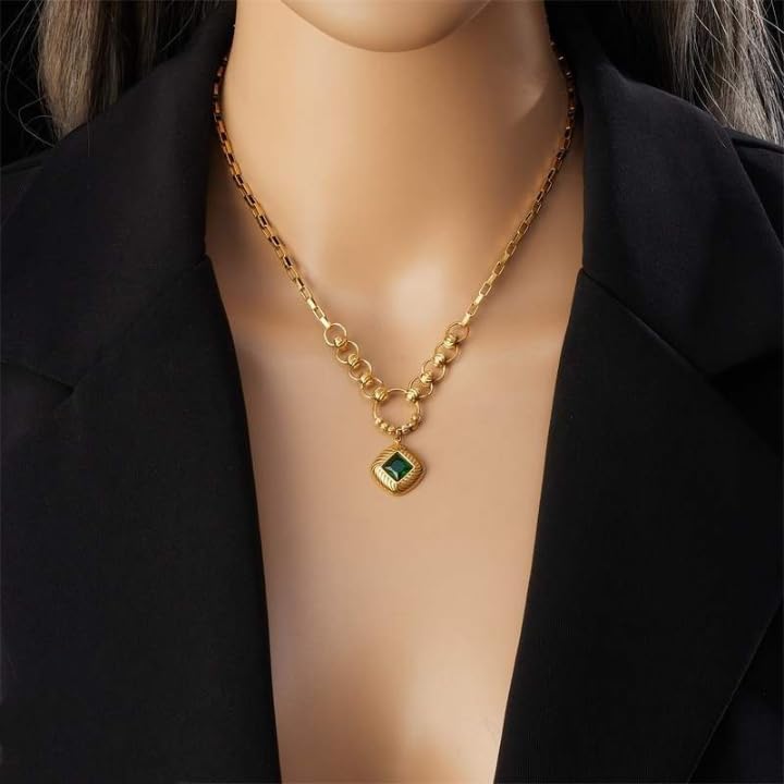 Generic - عقد واسوار بقلادة من الاحجار الكريمة بلون اخضر زمردي على سلسلة ذهبية للنساء