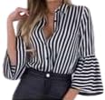 Generic - بلوزة حريمي أنيقة باللون الأسود المخطط مع أكمام واسعة، تصميم عصري يناسب الإطلالات اليومية