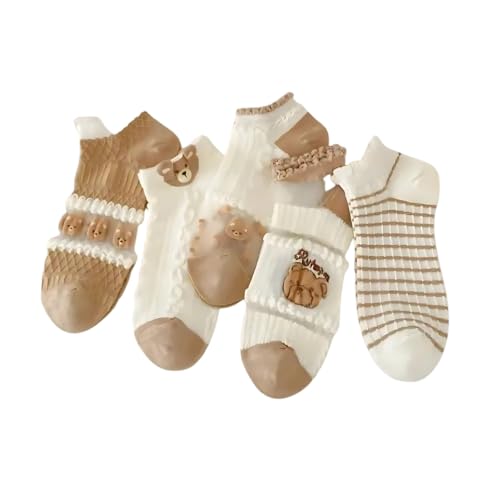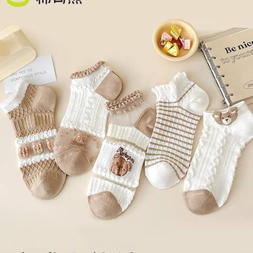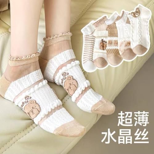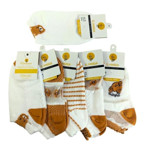 Generic - مجموعة شرابات للكاحل كاجوال للنساء أنيقة بتصميم كلاسيكي وعصري - مجموعة فاخرة 5 أزواج + 1 هدية (شيفون - شكل دبدوب - SHF1000)