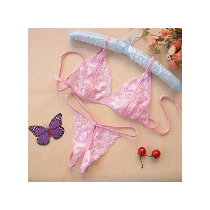 Generic - بيكيني قميص نوم لانجري نسائي أنيق - خامة دانتيل بيبي - دول بينك