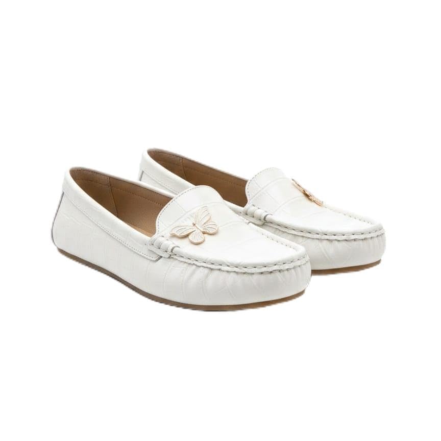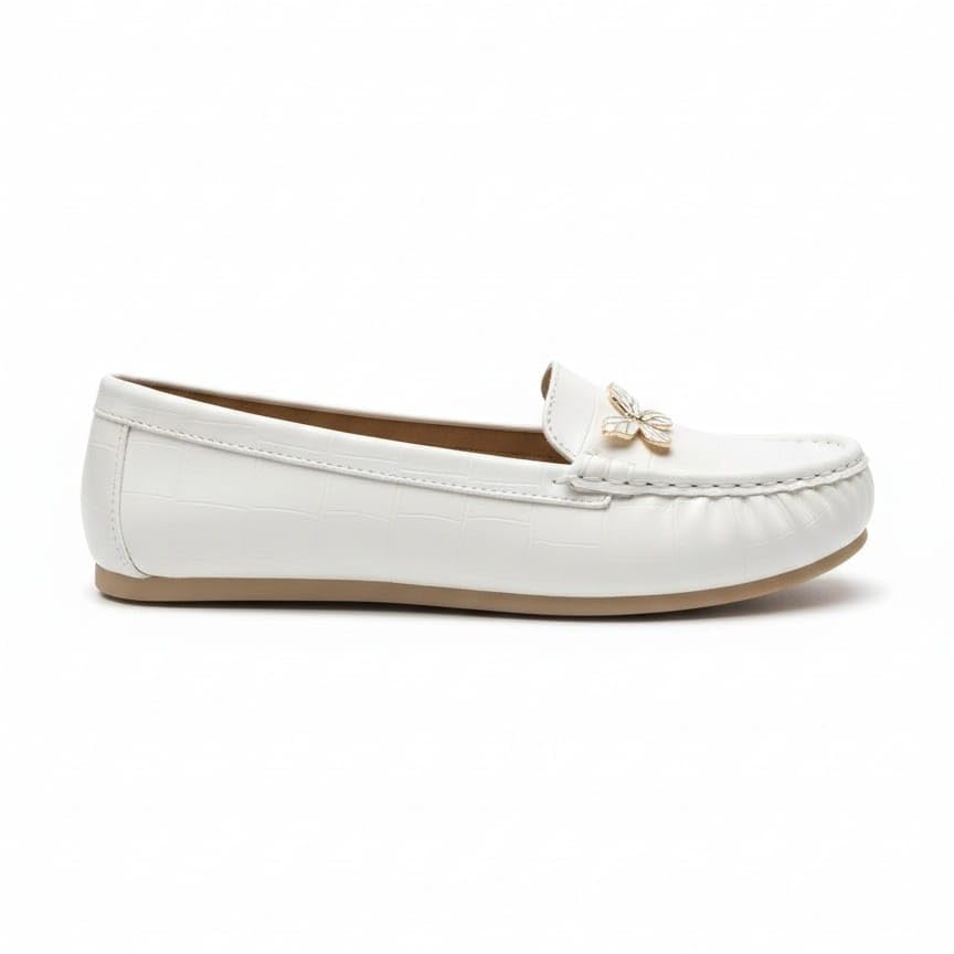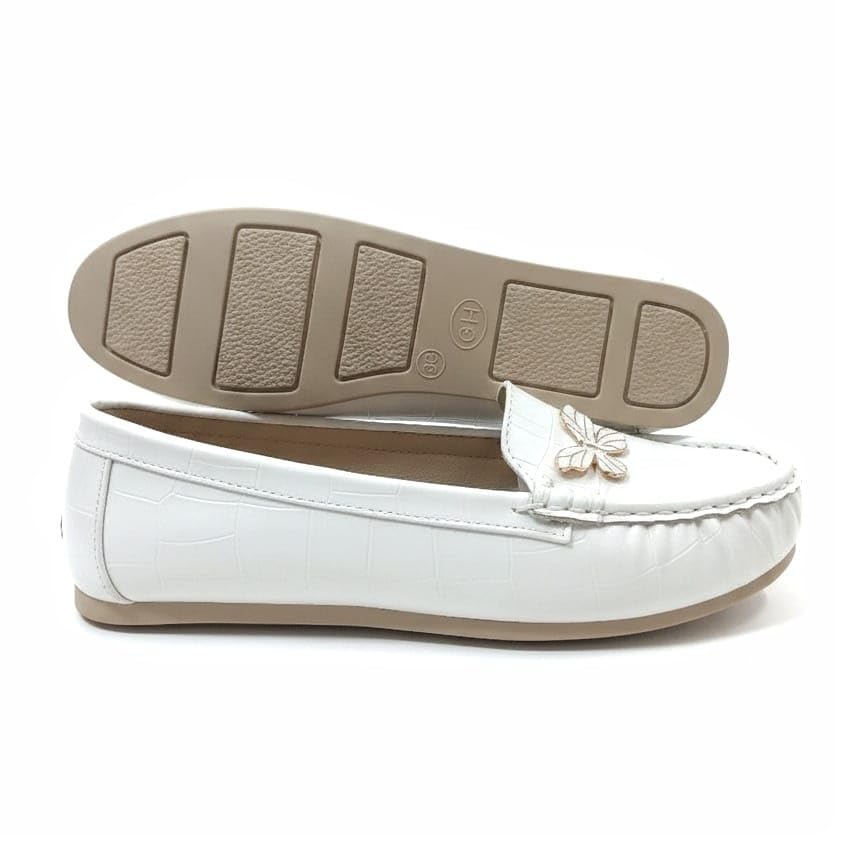 Generic - حذاء لوفر نسائي أنيق – جلد فاخر بنقشة عصرية مع إكسسوار مميز – مريح وخفيف للاستخدام اليومي (ابيض, 39)
