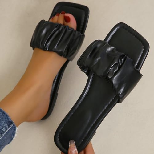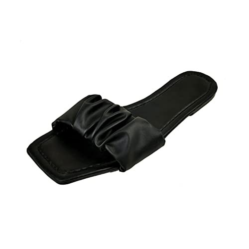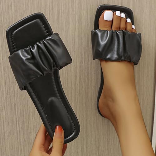 Generic - شبشب حريمي مفتوح عصري، جلد صناعي، تصميم مسطح مريح، مناسب للاستخدام اليومي، تصميم وش مكشكش (أسود, 38)