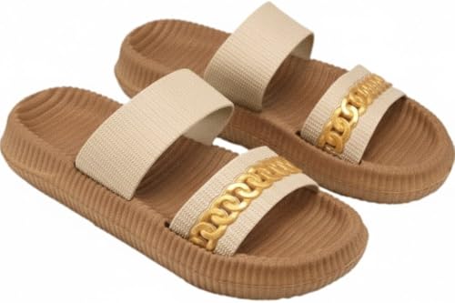 Tag - شببشب نسائي عصري بنعل سميك مريح - شبشب (سلايدز) بحزام مزدوج ومزين بسلسلة ذهبية - مناسب للشاطئ والاستخدام اليومي -اللوان متعدده - مقاسات من (37-41)