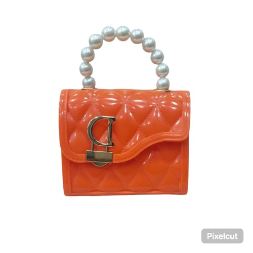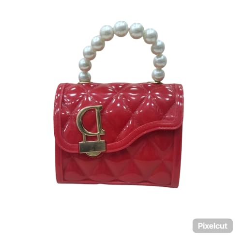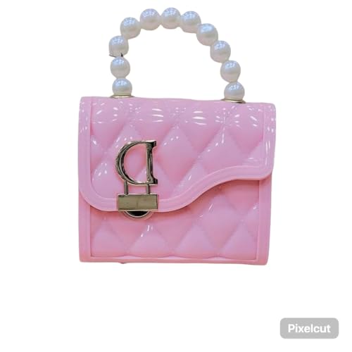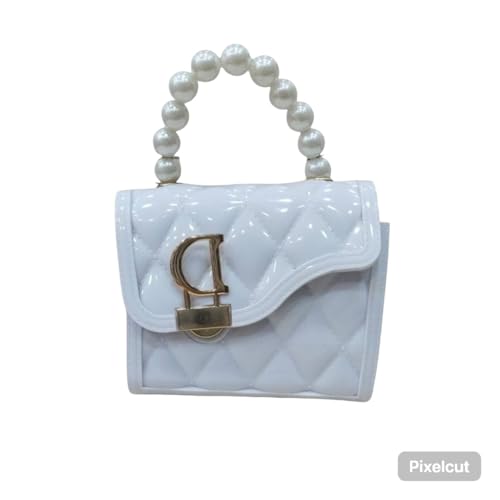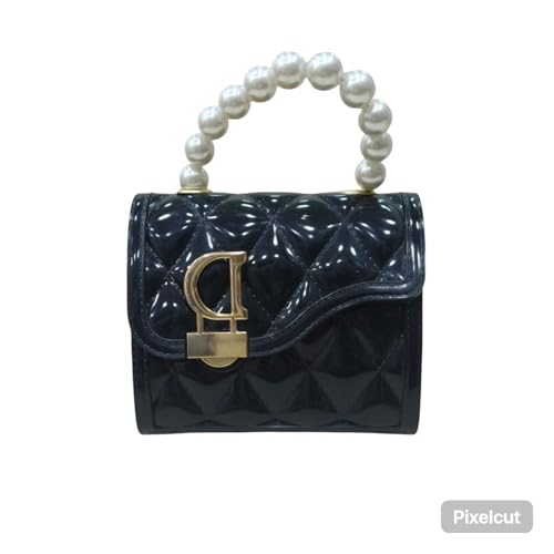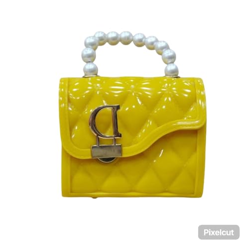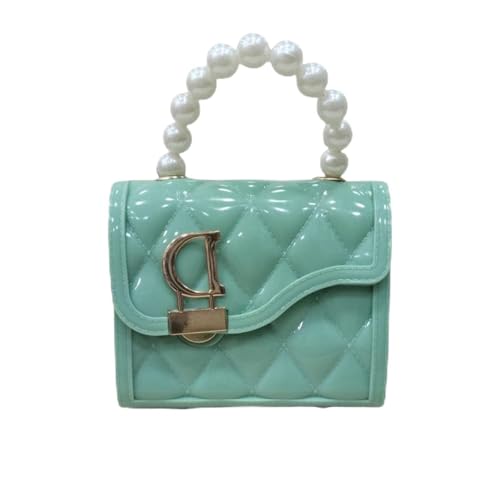 Generic - حقيبة كتف نسائية أنيقة، تصميم مبطن لامع، سلسلة لؤلؤ، متوفرة بألوان أسود وأصفر وأخضر فاتح، 20×10 سم