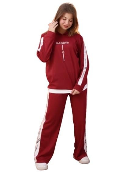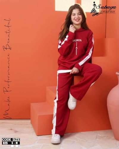 Generic - بدلة رياضية نسائية عصرية، طقم هودي وبنطلون واسع، قماش ريب مضلع، لون أخضر ورمادي مع شريط أبيض