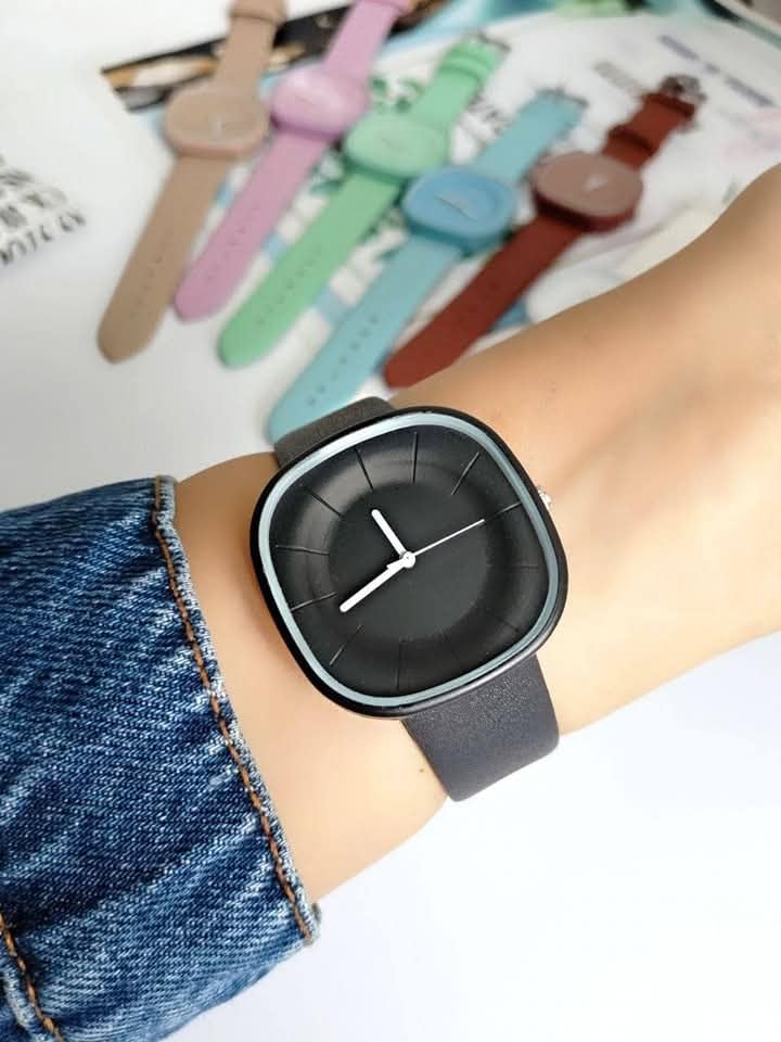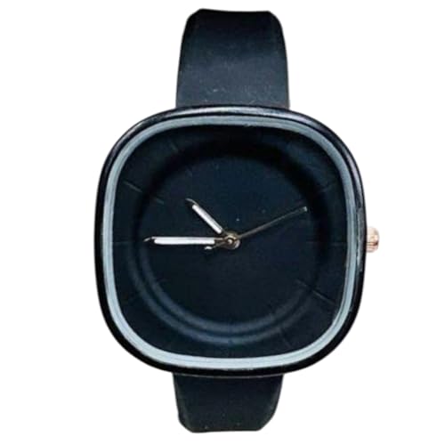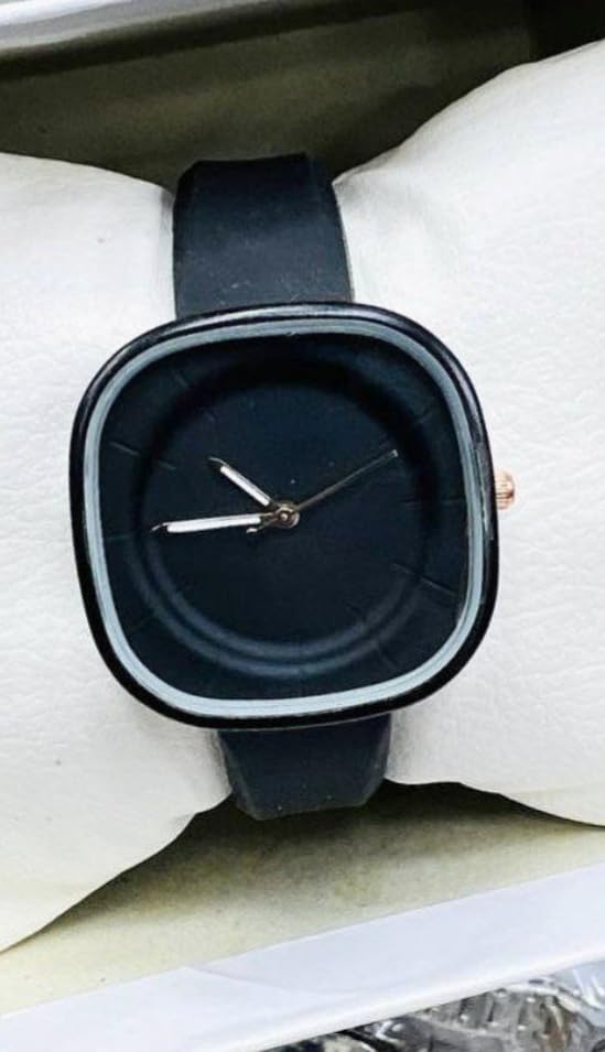 Generic - ساعة يد نسائية عصرية، إطار مربع، سوار جلد أسود، مينا سوداء ترند