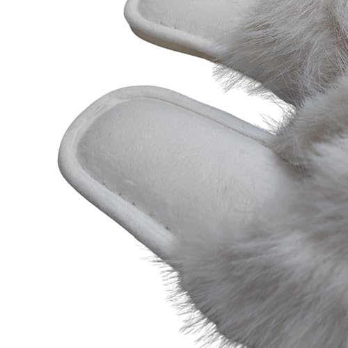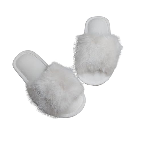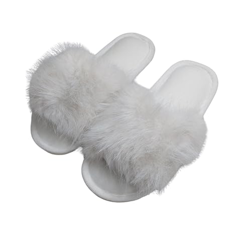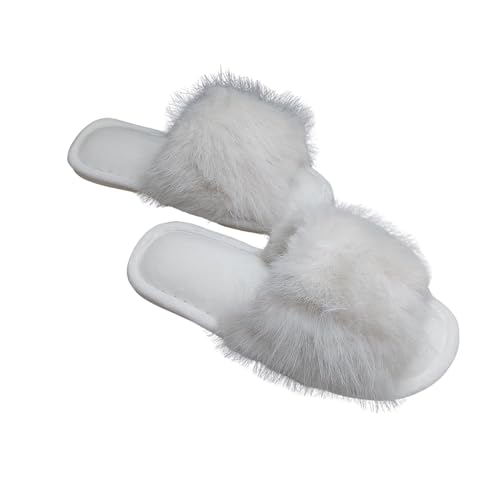 Generic - شبشب نسائي مفتوح من الخلف من الفرو الصناعي، ابيض، سهل الارتداء، للاستخدام الداخلي والخارجي، مقاس 40/41 - شبشب حريمي مفتوح