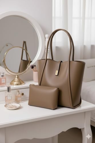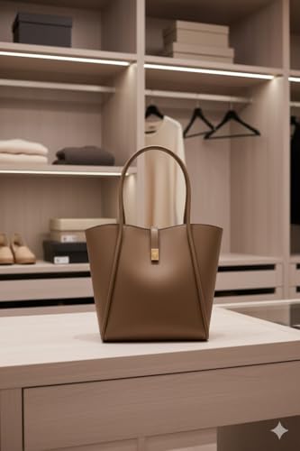 حقيبة يد نسائية من الجلد الصناعي مع إغلاق بقفل دوار، تصميم كلاسيكي أنيق للاستخدام اليومي والمسائي