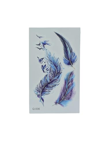 Generic - تاتو مؤقت بتصميم ريش للنساء، لون أزرق