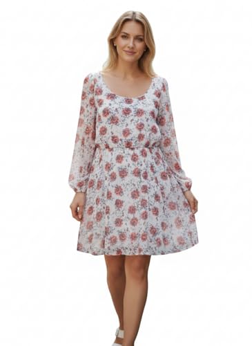 Generic - فستان شيفون طويل الاكمام للنساء، طول 94 سم، فستان قصير كاجوال مبطن بالكامل، مقاس كبير XL - XXL (توماس وسبليندور)