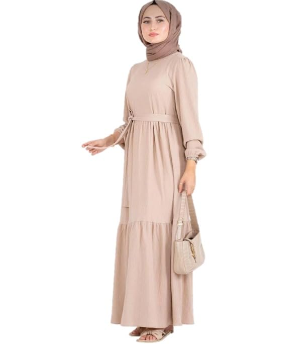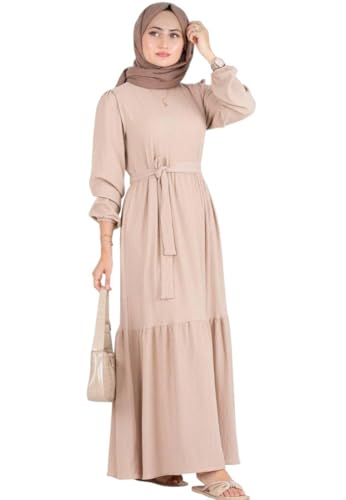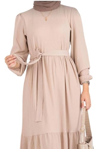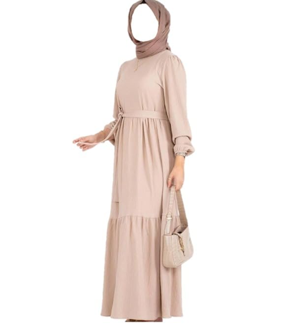 Generic - فستان نسائي بطول القدمين مقاس 40 باللون البيج فضفاض
