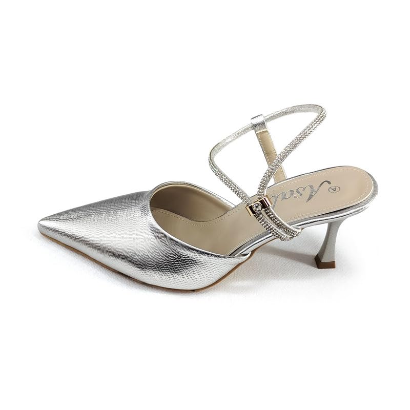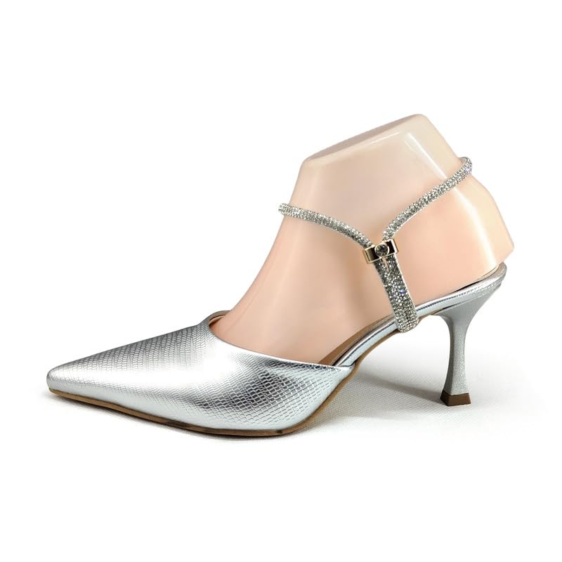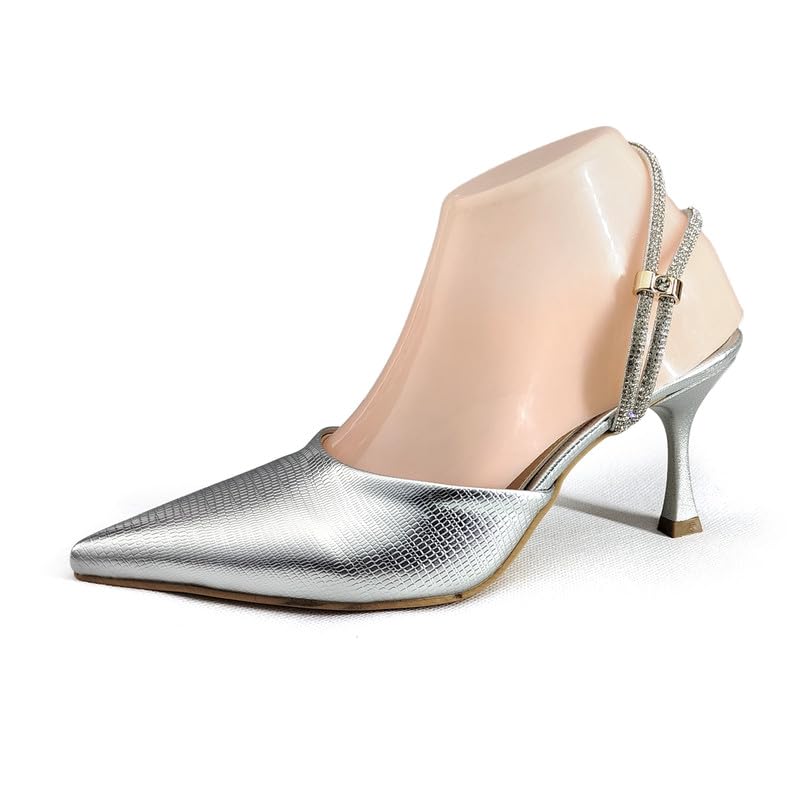 Generic - حذاء سهرة رسمي بكعب رفيع للنساء بلون فضي