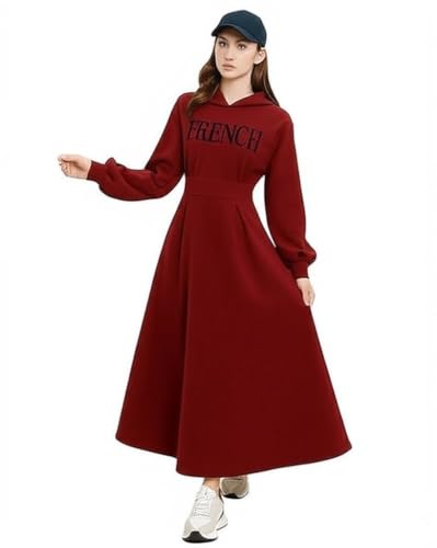 Generic - فستان نسائي طويل بقلنسوة وأكمام طويلة بتصميم فرنسي أنيق ومريح مع جيوب جانبية
