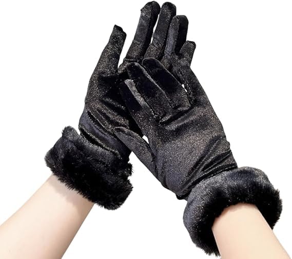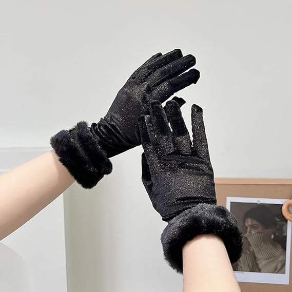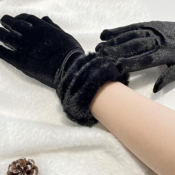 Generic - قفازات قطيفة فرو نسائية، أسود، للدفء والأناقة، جودة عالية