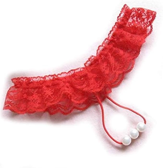 Generic - جي-سترينج للنساء (مقاس واحد، احمر) بانتي جي سترينج بظهر شكل T للنساء - احمر دانتيل علي الموضة للنساء برباط لؤلؤ تدليك