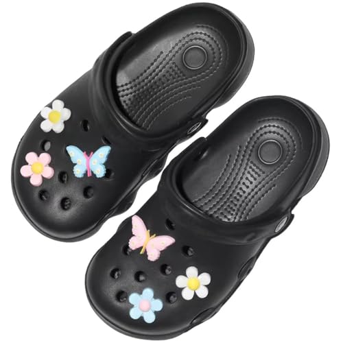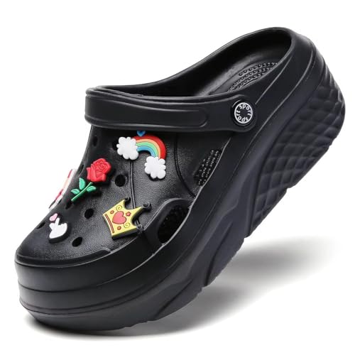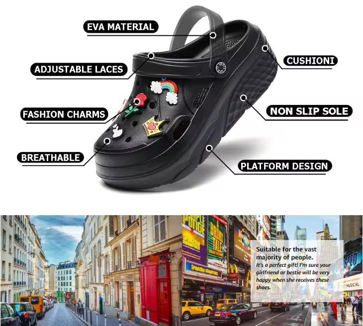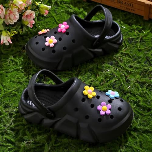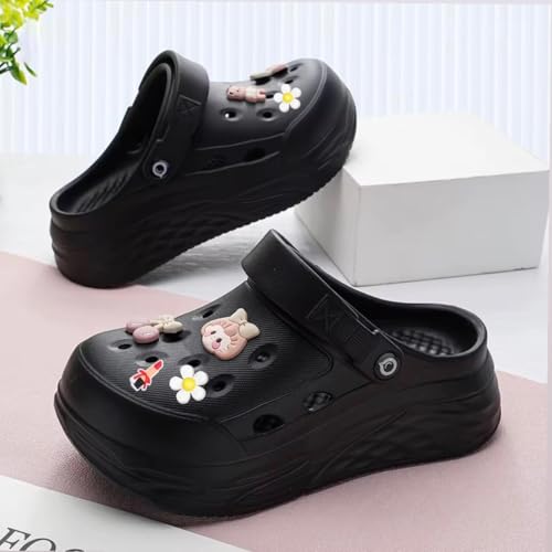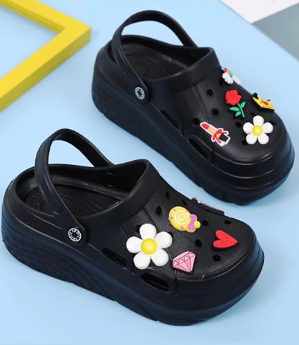 Generic - كلوج للنساء والبنات مرتفع - شبشب أسود بنعل طبى ومريح - خامة مطاطة مضاد للانزلاق - مثالي للبيت، الشاطئ والشارع - اكسسوارات متعددة الألوان