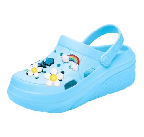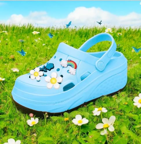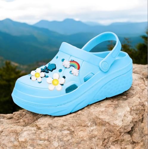 Generic - كلوج للنساء والبنات مرتفع - شبشب أزرق بنعل طبى ومريح - خامة مطاطة مضاد للانزلاق - مثالي للبيت، الشاطئ والشارع - اكسسوارات متعددة الألوان