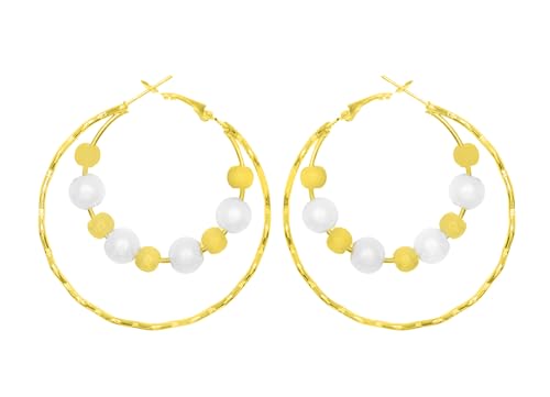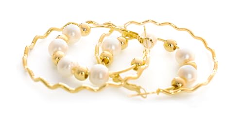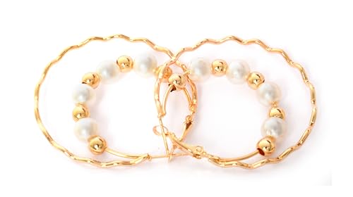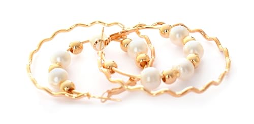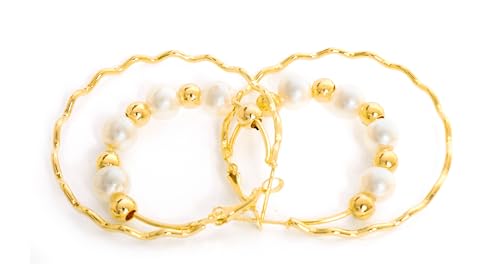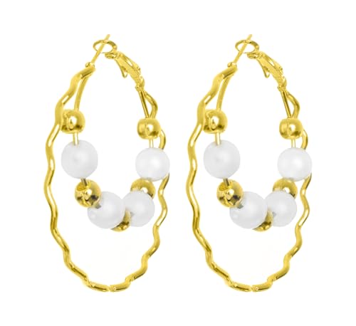 Generic - حلق لولي مدور نسائي ذهبي وأبيض، ستانلس ستيل، للنساء