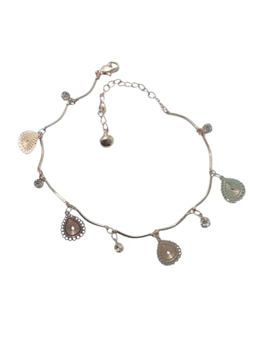 Generic - سوار كاحل نسائي لون دهبي مع حلي دائرية، مزين بالكريستال وقلادات قطرة الماء، تصميم عصري أنيق