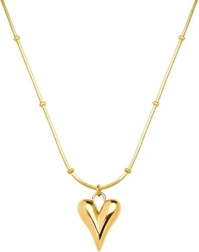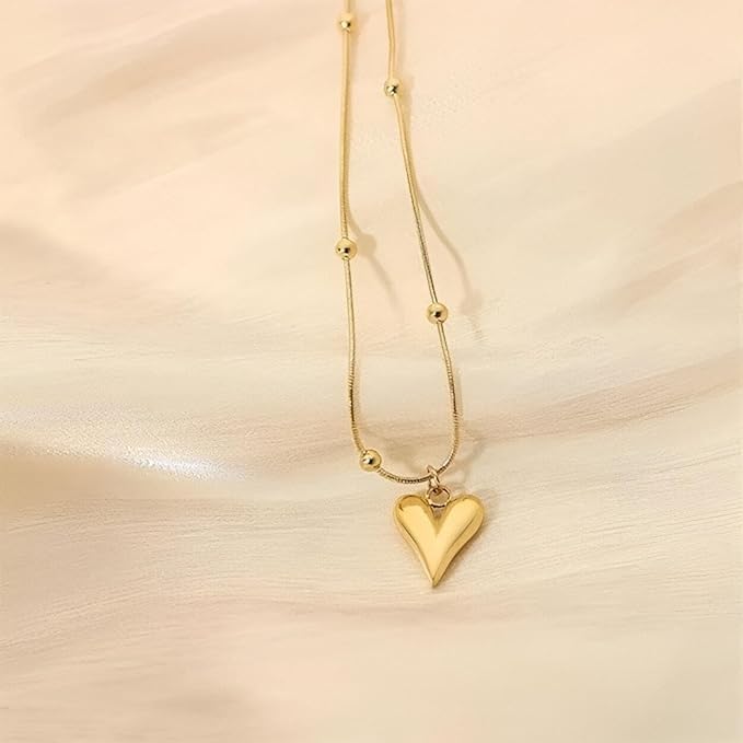 Generic - عقد ذهبي نسائي حمصة مع قلاده على شكل قلب، مطلي بالذهب، تصميم عصري أنيق للمناسبات والإستخدام اليومي التريند