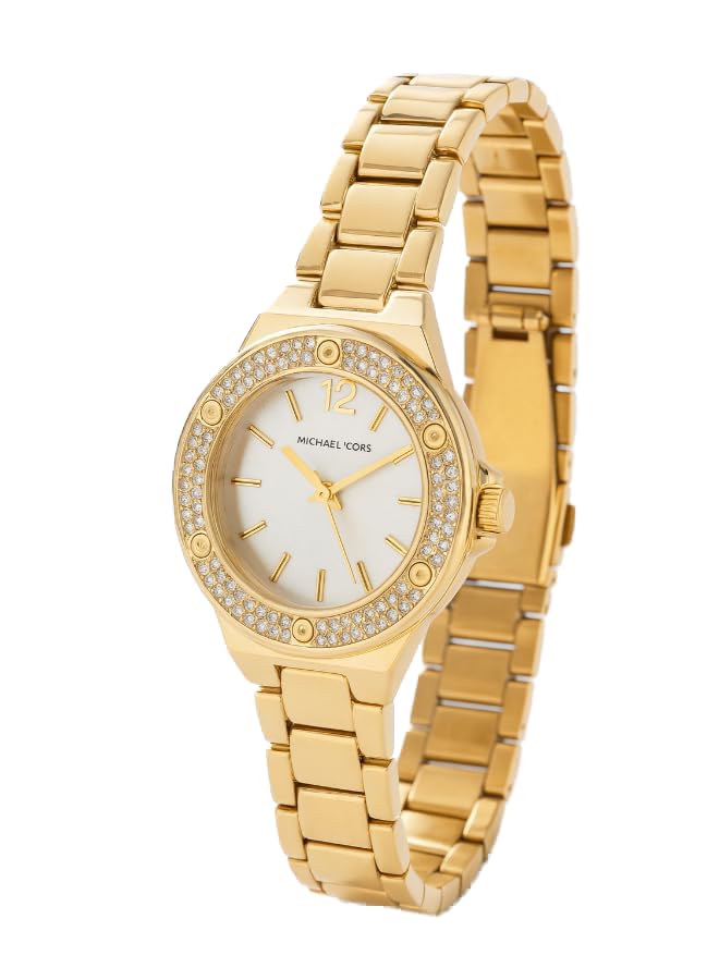 Generic - ساعة نسائية ذهبية مرصعة بالكريستال، سوار استانلس استيل، مينا بيضاء