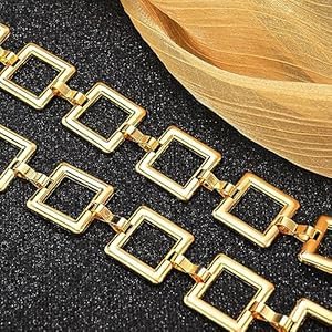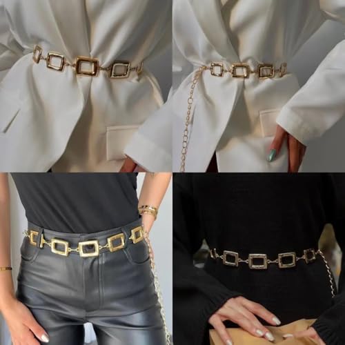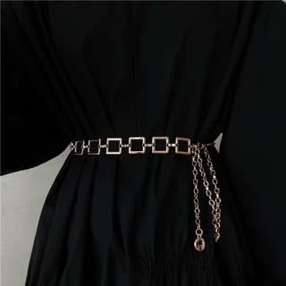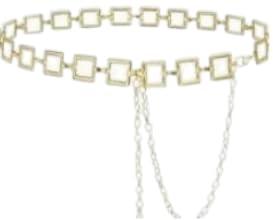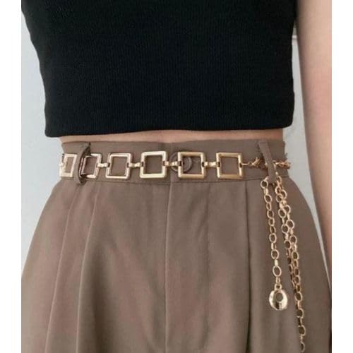 Generic - حزام نسائي معدني ذهبي مربعات مفرغة مع سلسلة متدلية