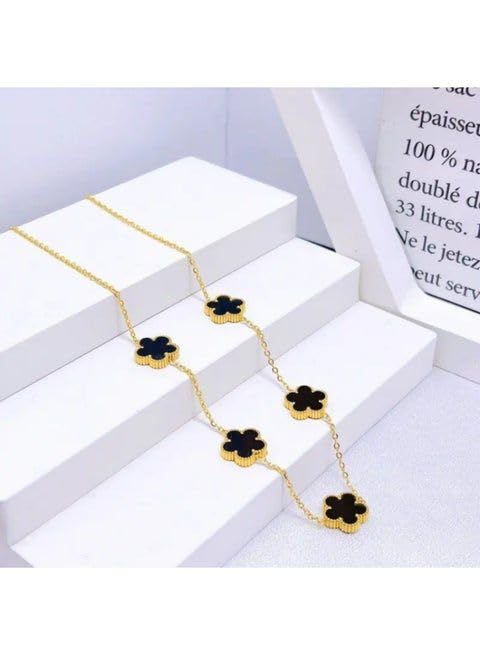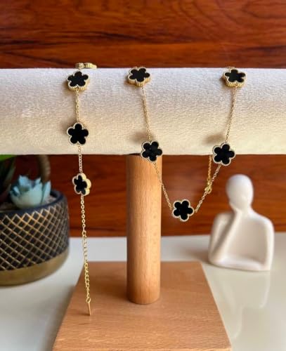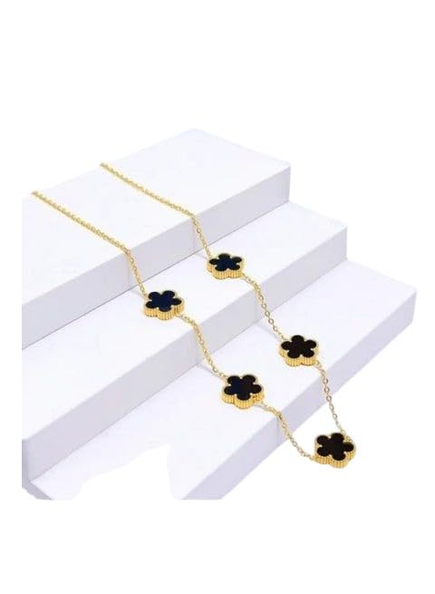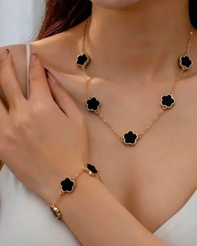 Generic - قلادة نسائية مطلية بالذهب مع زخارف الزهور السوداء، سلسلة طويلة أنيقة، إكسسوار عصري