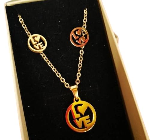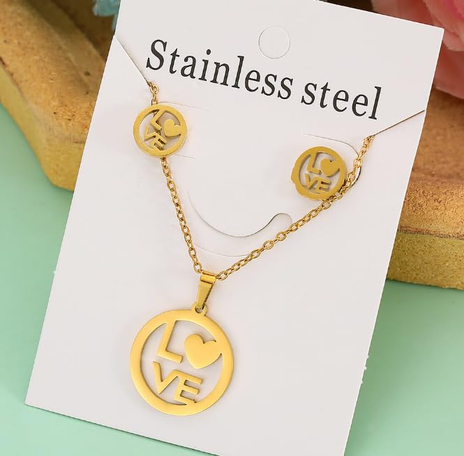 Generic - طقم مجوهرات نسائي ستانلس ستيل ذهبي، سلسلة وأقراط على اشكال متنوعه، مناسب للاستخدام اليومي والمناسبات
