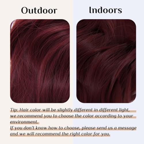 Generic - باروكة شعر للنساء لكامل الرأس بطول 46 سم شعر مستعار صناعي ذو مظهر طبيعي متموج مع 5 مشابك باروكة رخيصة منفوشة وغير متشابكة للنساء 42-52 سم 120 جرام لون أحمر نبيذي jw-299- NO jw-J99