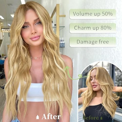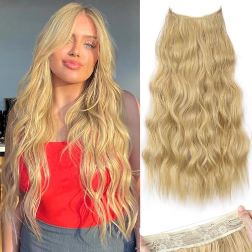 Generic - باروكة لكامل الرأس مصنوعة من ألياف صناعية بتصميم طبيعي مموج ومزودة بـ 5 مشابك تثبيت للنساء، طول 58-65 سم ووزن 150 جرام، أشقر، NO jw-245-N15A