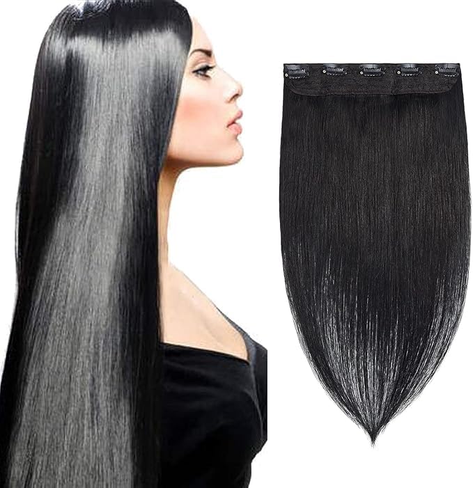 ECIF - وصلة شعر مستعار لكامل الرأس للنساء موديل JW-298 بطول 55 - 60 سم - 150 جم - بمظهر طبيعي مفرود ومنفوش وغير متشابك ومزودة بـ5 مشابك، اللون رقم 1 - أسود