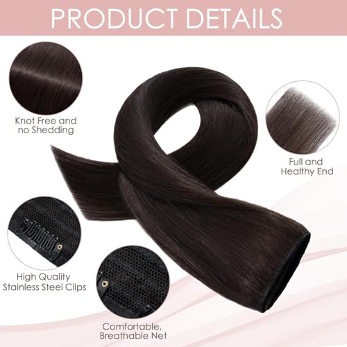 Generic - وصلة شعر مستعار لكامل الرأس للنساء بطول 55 - 60 سم - 150 جرام - باروكة شعر صناعي بمظهر طبيعي مفرود ومنفوش وغير متشابك ومزودة بـ 5 مشابك، اللون رقم 4 - بني غامق، JW-243